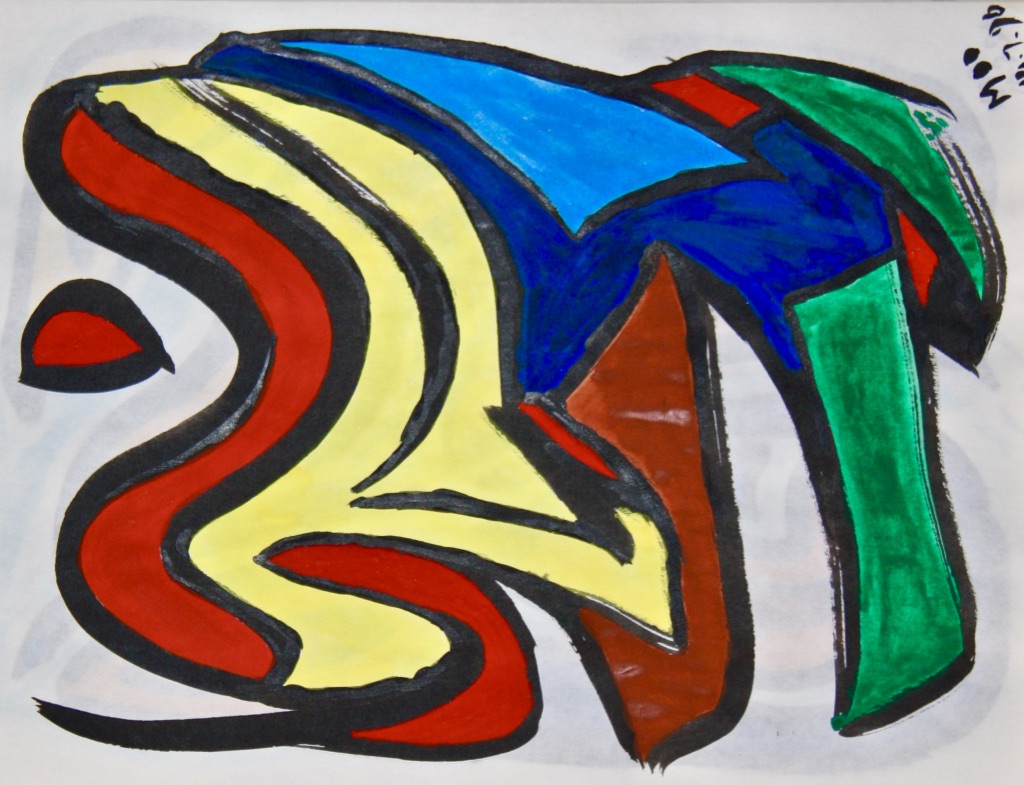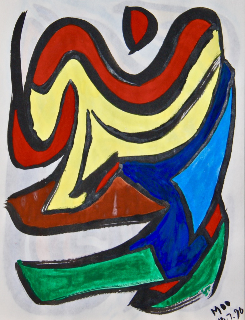 The signature, top right, suggests that the painting was conceived as in the initial photo. But, does it have to stay that way? Of course not. The creature, if creature it is, is a creature of my own creation. I can fit it into any form that I want. Ignore the signature. Concentrate on color, shape, and meaning. But remember that meaning is drawn from color and shape.