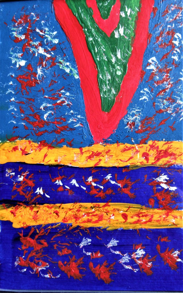 Moo apologizes. He hasn’t painted any chimpanzees, but a long time ago (2018) he drew and colored this cartoon. Pink and Purple Penguin Parade with Grand Marshall, Princess Squiffy. You can just see the end of Princess Squiffy’s tail as she vanishes out of the cartoon, encouraging the Pink and Purple Penguins to follow behind her behind. Oh the joys of leading the parade. Not everybody wants to do it though, many are content not to lead, but just to follow. Perhaps we should have called our cat MacNamara. After all, he was the leader of the band. But I don’t think Princess Squiffy would rather be anything other than what she is – a princess.